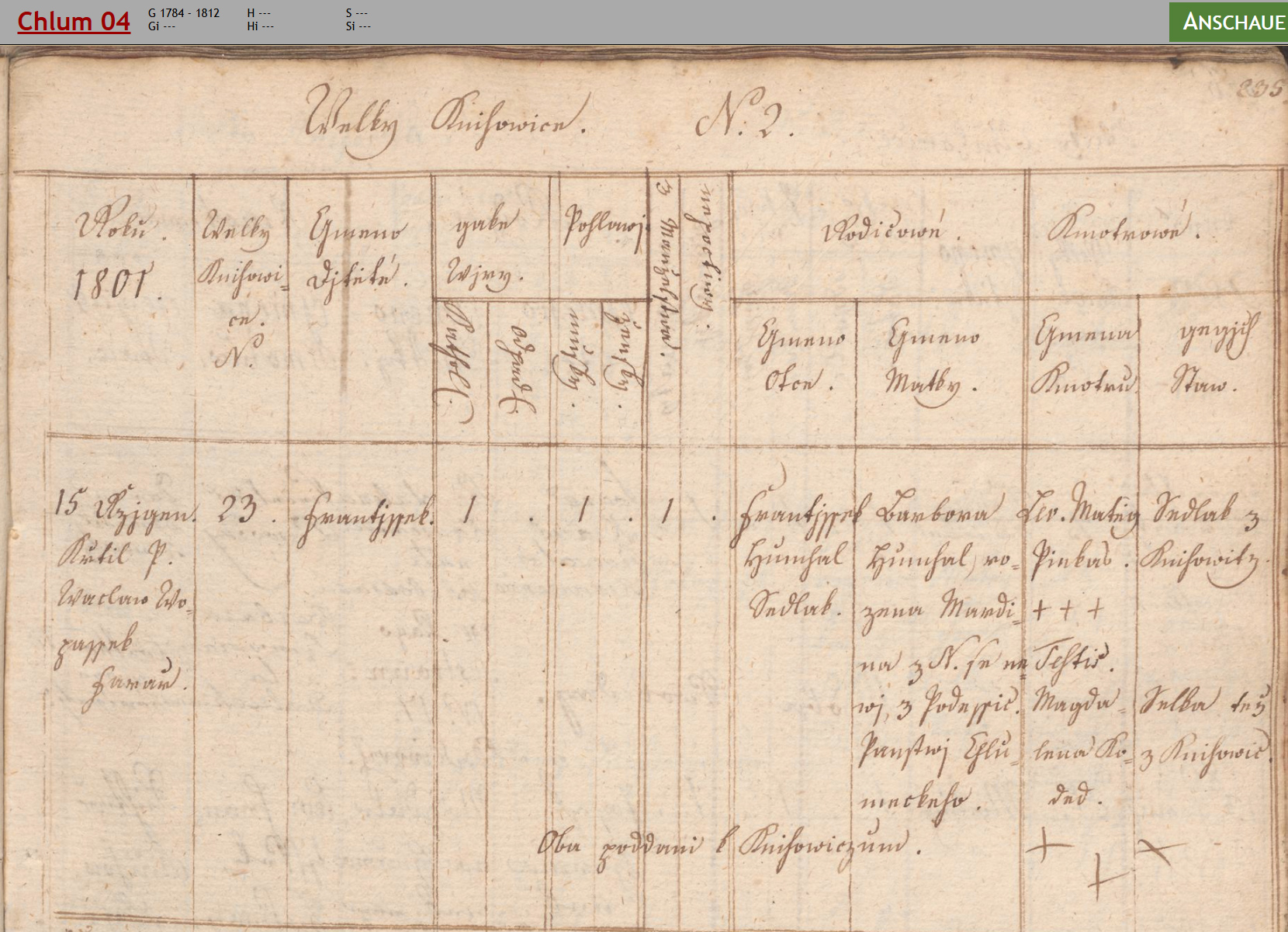 Am 15. Oktober des Jahres 1801 taufte Herr Václav Vozapek, Pfarrer in Groß Kňovice, Haus Nr. 23.