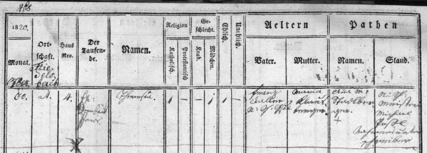 Mutter: unleserlich - Theresia Daller im Taufbuch Losenstein 1820 101/13b Seite 468: