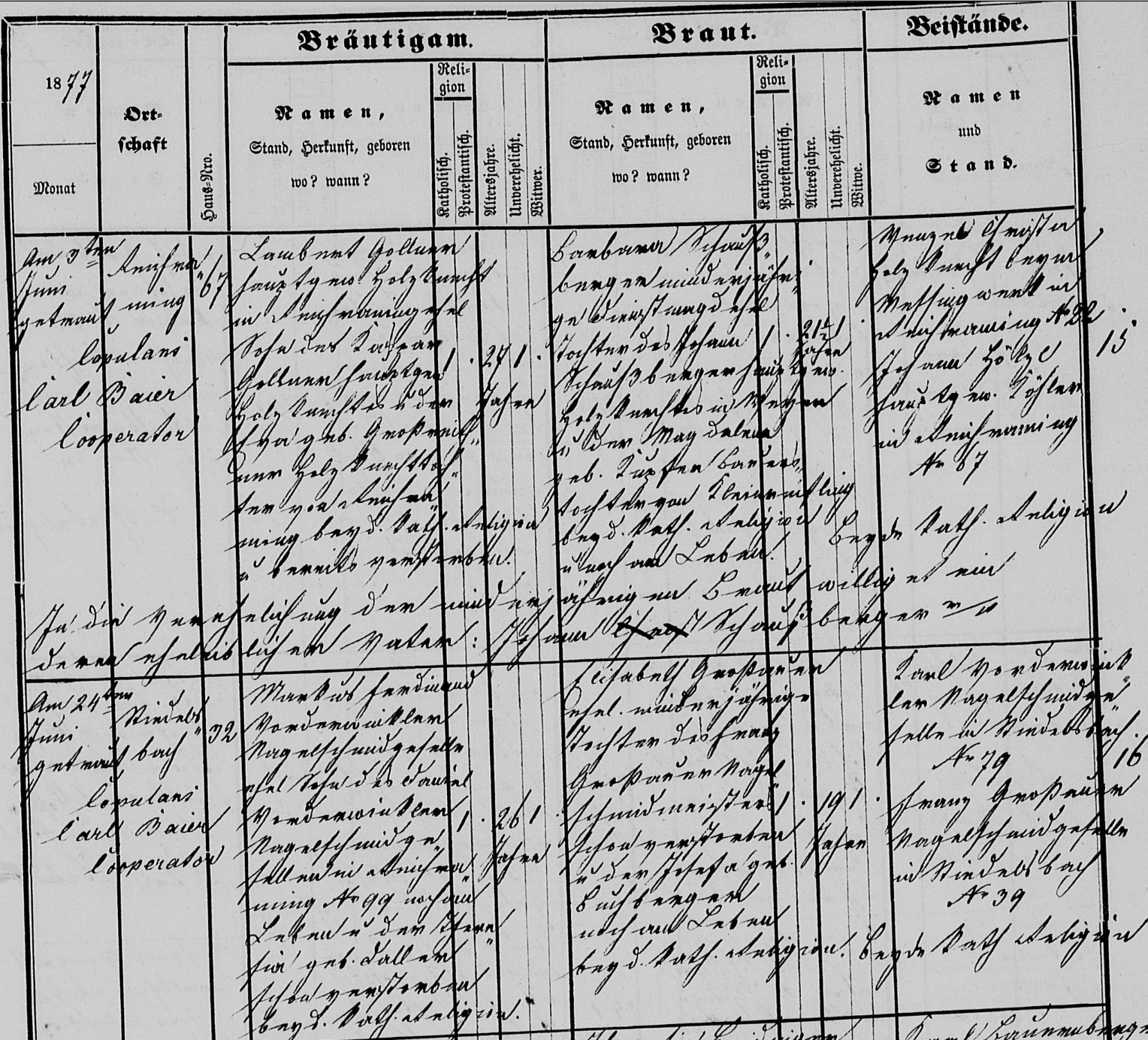 Am 24 Juni, Bräutigam: Marcus Ferdinand Vorderwinkler, Nagelschmiedgeselle