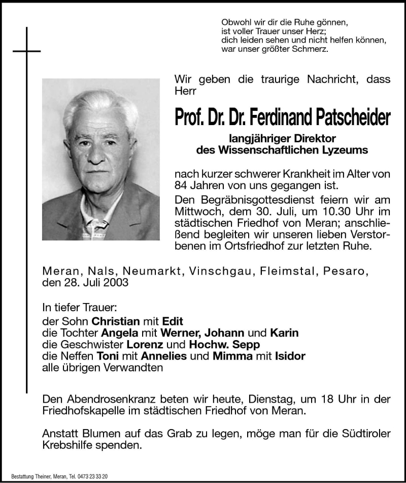 - 6001 Veith PATSCHEIDER m. Christina JOßIN children 7001