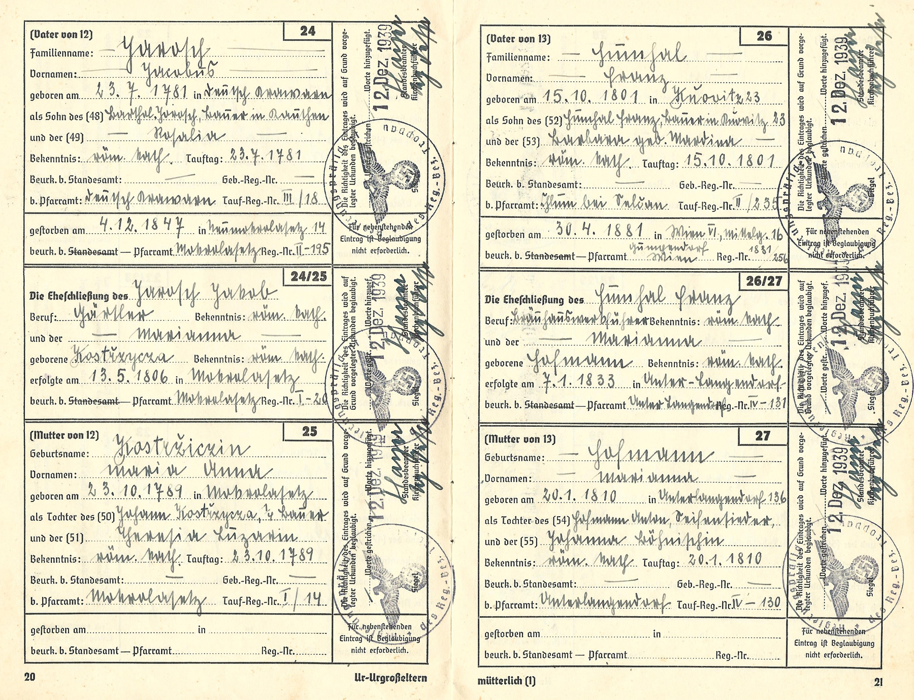 The "Ahnenpass" (ancestry certificate) is credible and therefore a good data basis.