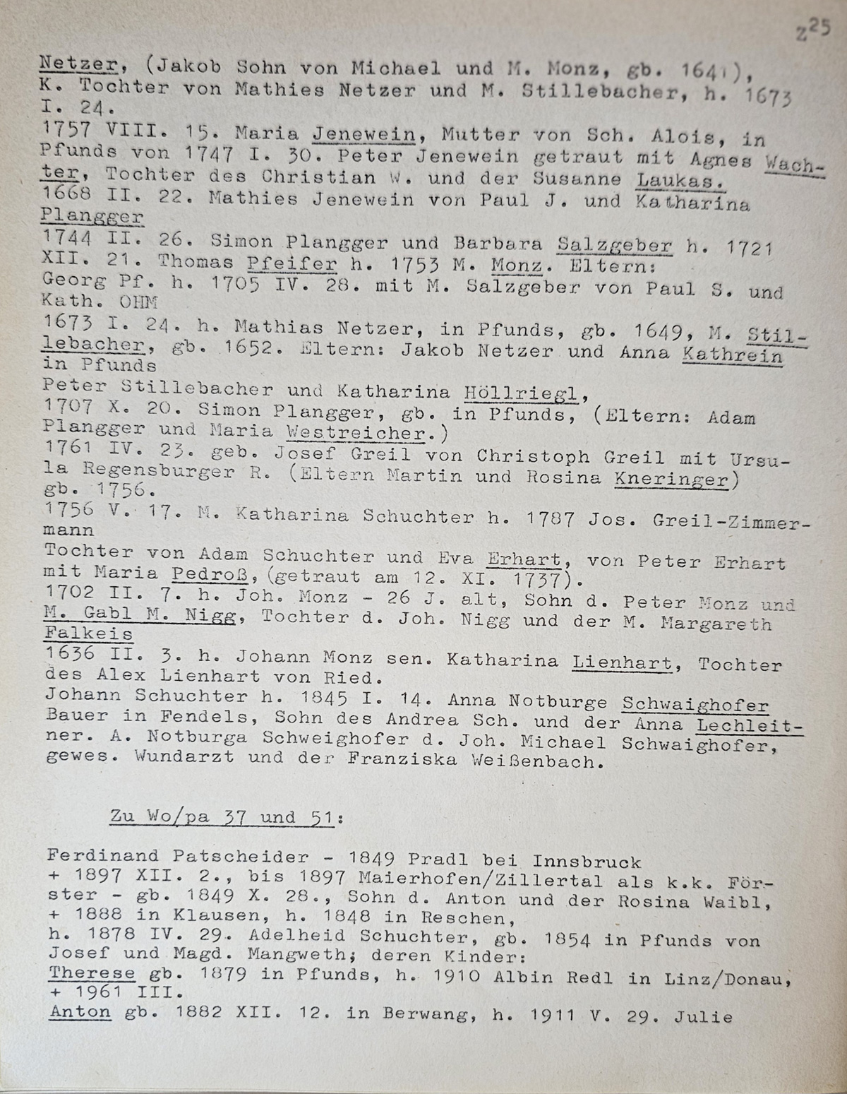- Katharina SCHUCHTER *17.5.1756 in Pfunds, married on 8.4.1787 to Josef GREIL *1761