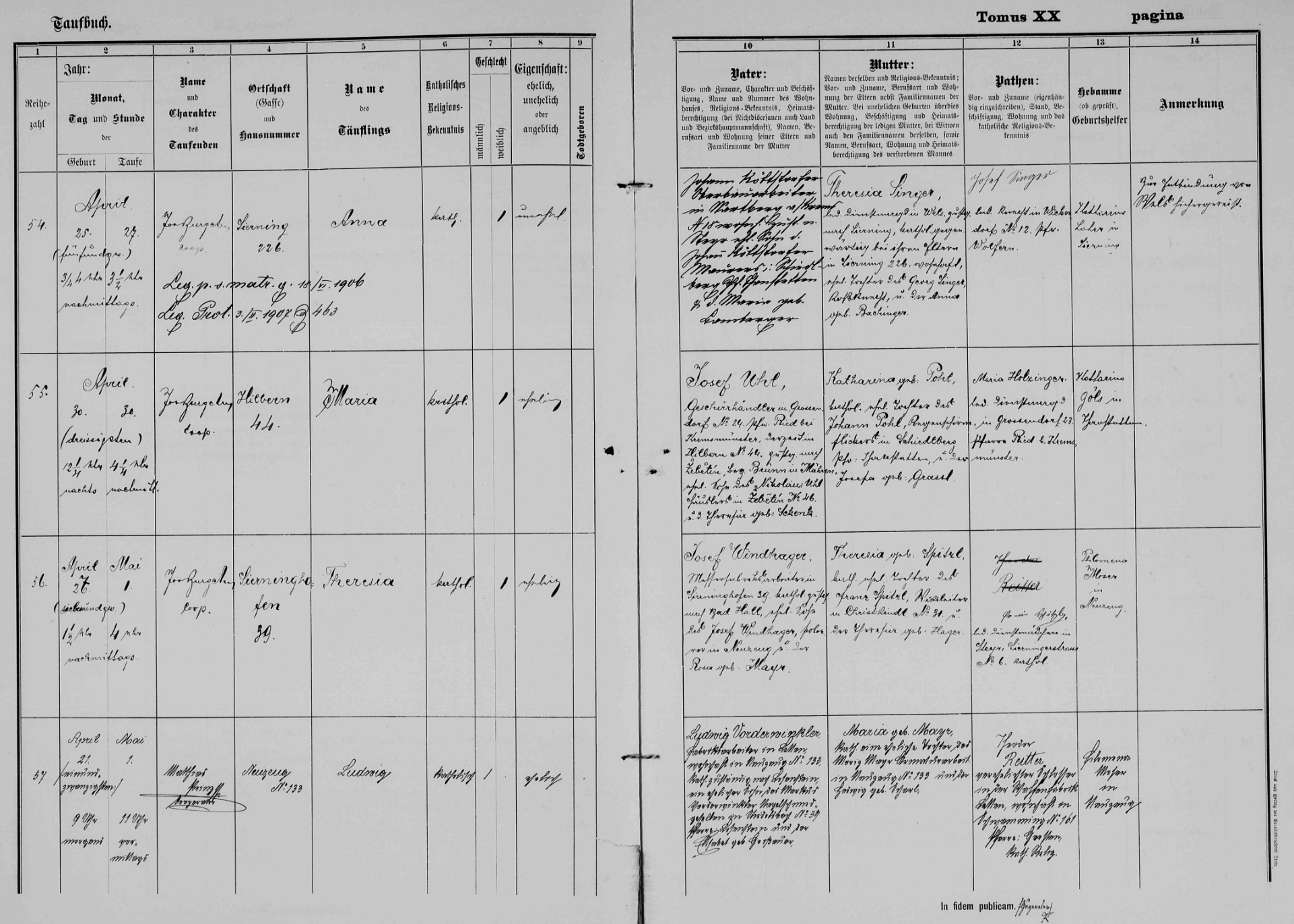 Mother: Maria geb. Mayr, Kath. eine eheliche Tochter des Moritz Mayr, Amateurarbeiter in Neuzeug Nr. 133, und der Hedwig geb. Scharl - Personal communications from Karin Hippacher:
