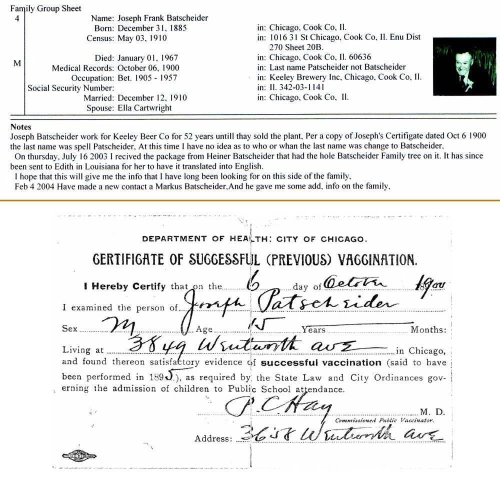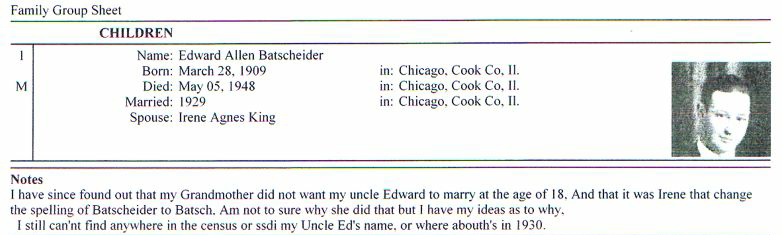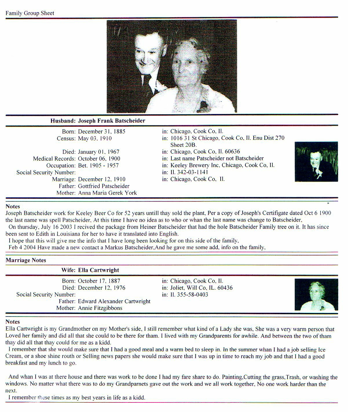 - A5001 Fritz PATSCHEIDER *3.5.1890 München (Berg am Laim ), m. Margaret SPÖRLEIN *12.1.1891 children A6001