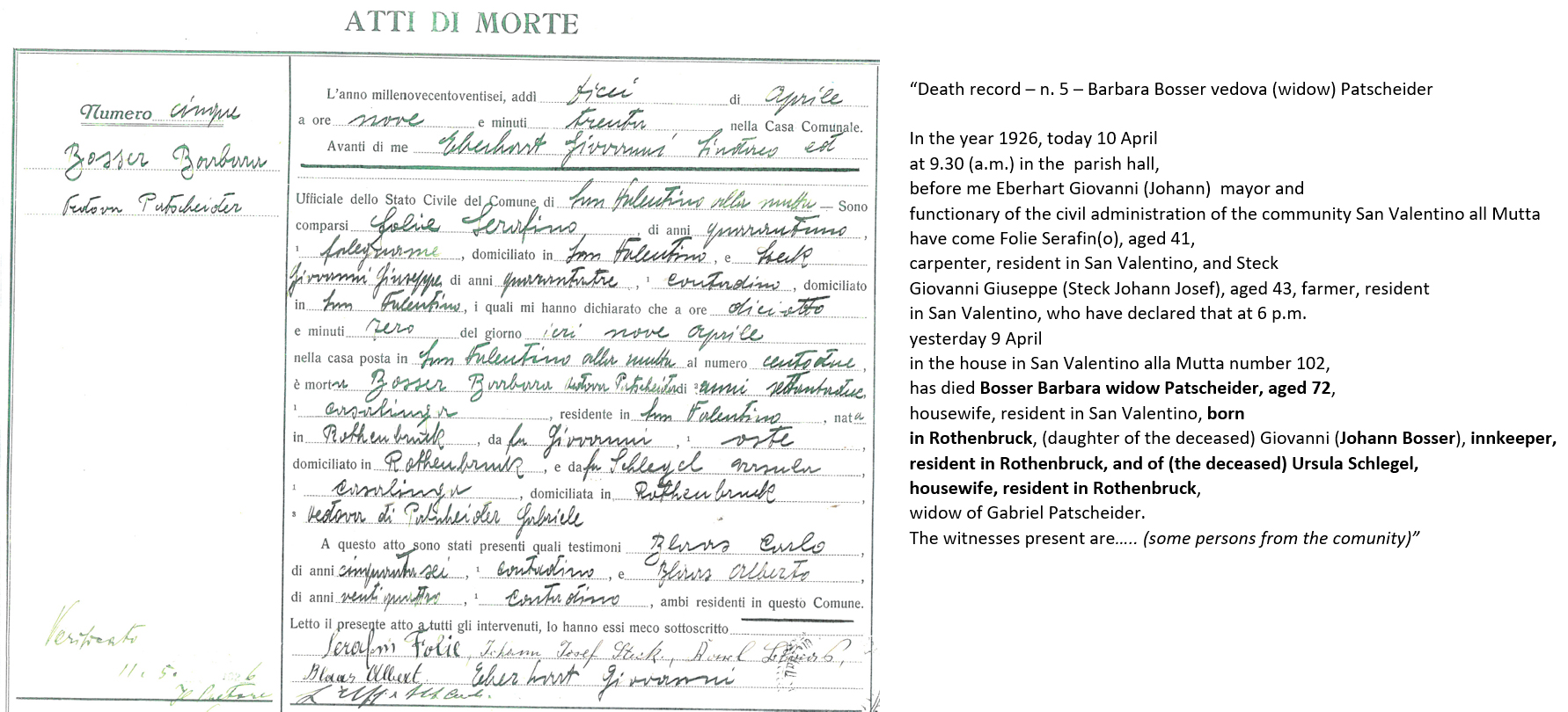 - B4006 Balthasar PATSCHEIDER *16.1.1755, m. 25.2.1781 in Graun Maria BLASIN † 1819 children B5021